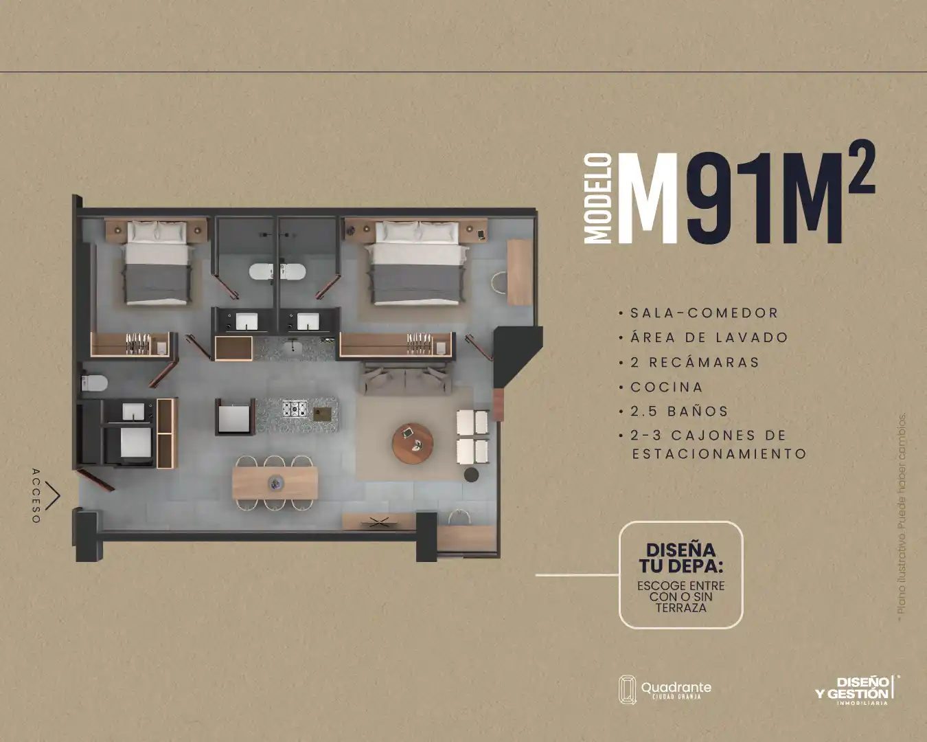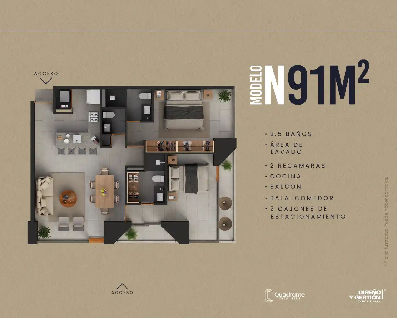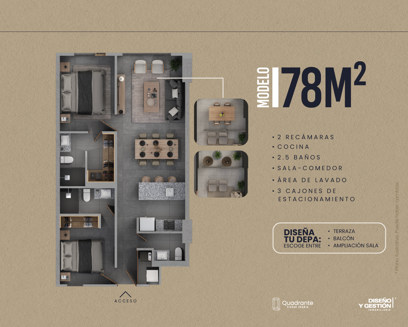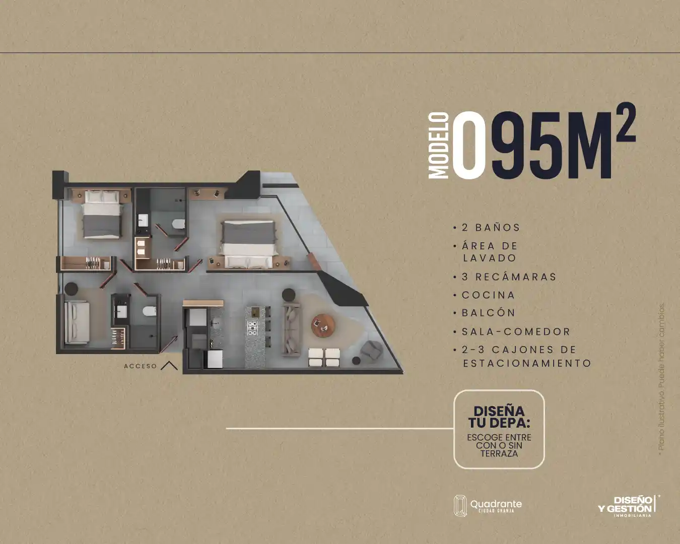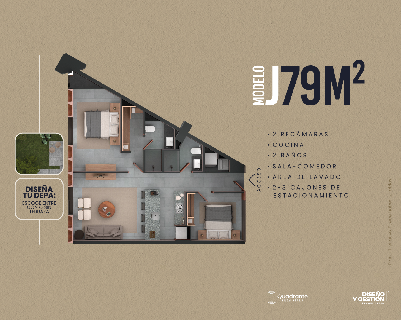 En Quadrante encontrarás el hogar ideal, con departamentos de 40 m² a 123 m², amplios espacios y estacionamiento.
